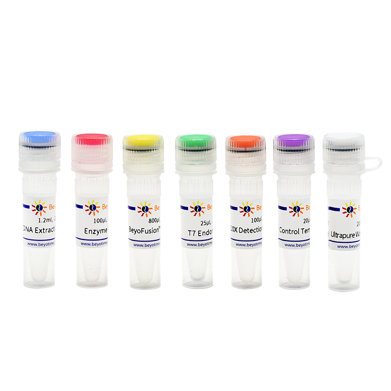 Genome-Editing Mutation Detection Kit contains all reagents for DNA extraction, PCR amplification with high fidelity, and T7E1 enzyme digestion. It also contains positive control template DNA and its corresponding primers for troubleshooting. The DNA extracts and PCR products can be added directly into the subsequent reactions without extra purification, enabling the kit convenient to use.
